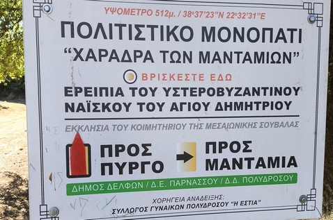 Η διαδρομή μας ξεκινά από τον οικισμό Πολύδροσος, περνά μέσα από πεύκα και έλατα και καταλήγει στον οικισμό Άνω Πολύδροσο στην εκκλησία του χωριού.