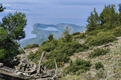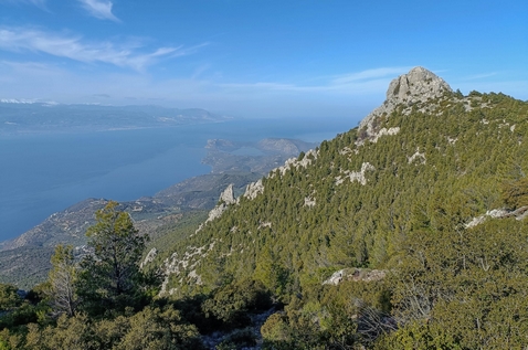 Συνεχίζουμε στην κορυφογραμμή έως την τοποθεσία Έλατος, που και από εδώ η θέα είναι υπέροχη. Από αυτό το σημείο αρχίζουμε να κατηφορίζουμε ακολουθώντας άλλο μονοπάτι που περνά μέσα από όμορφο δάσος με μικρά ανοίγματα. Περνάμε από την εκκλησία της Φανερωμένης και θα καταλήξουμε έξω από το χωριό Πίσια.
